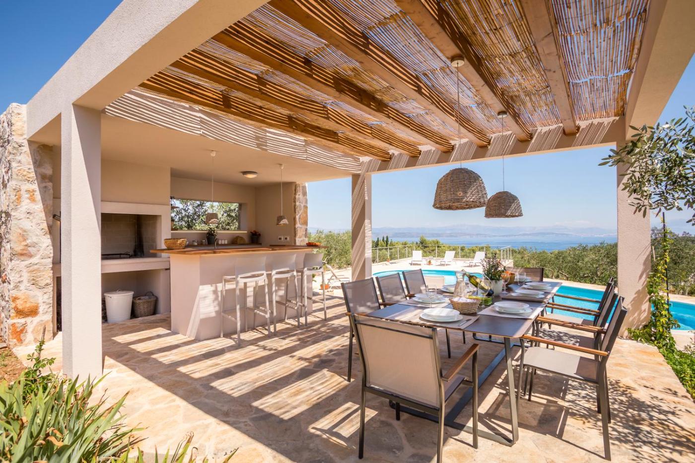 Three-Bedroom Villa. This villas special features are the pool with a view and the fireplace. Boasting a private entrance, this air-conditioned villa includes 1 living room, 3 separate bedrooms and 1 bathroom with a shower and a hairdryer. Guests will find a refrigerator, a dishwasher, kitchenware and an oven in the well-fitted kitchen. The villa also features a barbecue. Featuring a terrace with sea views, this villa also offers a coffee machine and a flat-screen TV. The unit has 6 beds.