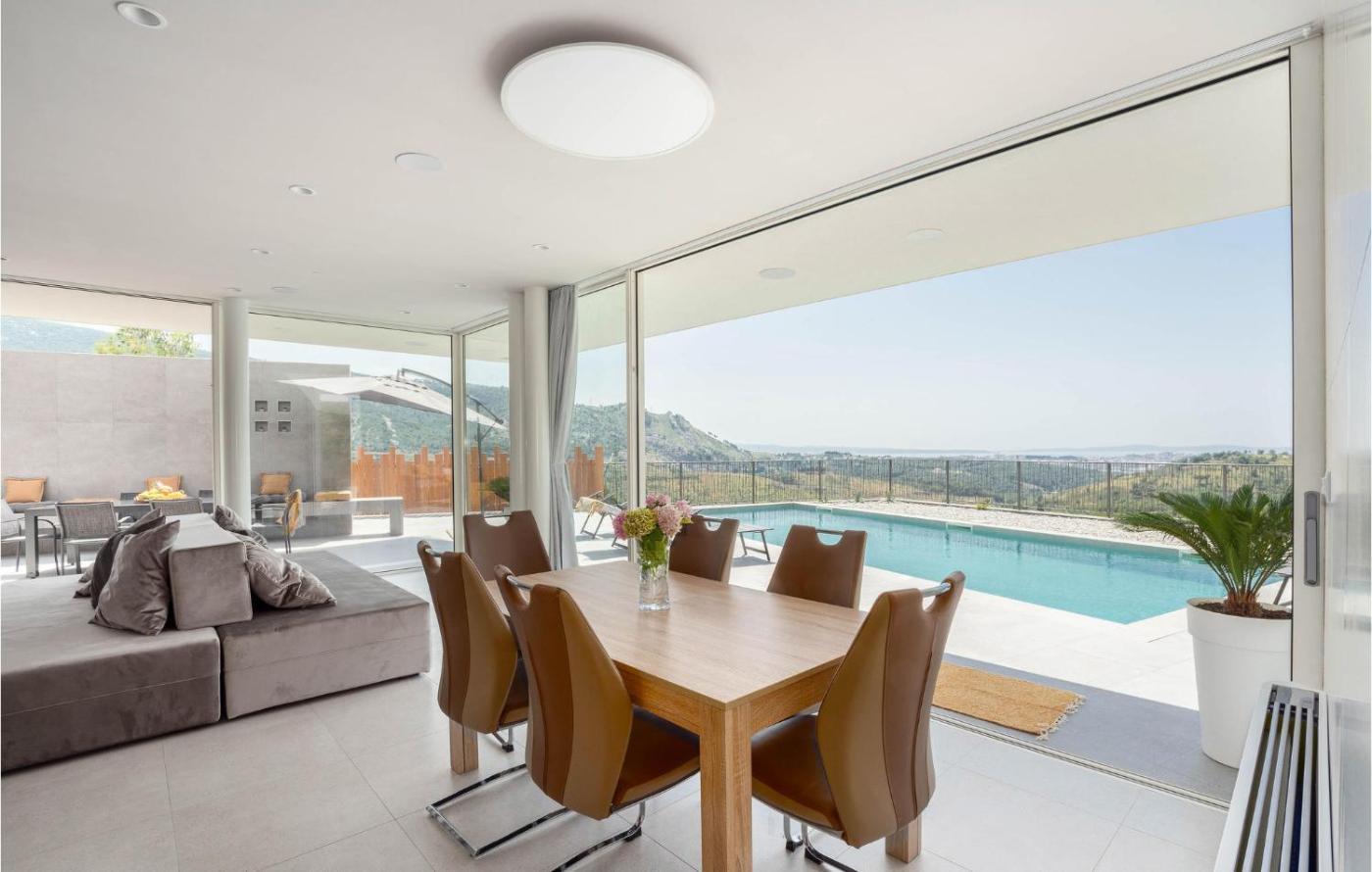 Three-Bedroom Holiday Home. The private pool and fireplace are the standout features of this holiday home. Featuring a private entrance, this spacious holiday home also comprises 1 living room, 3 separate bedrooms and 4 bathrooms with a shower. Guests will find a refrigerator, a dishwasher, kitchenware and a microwave in the kitchen. The holiday home also provides guests with a barbecue. The air-conditioned holiday home provides a flat-screen TV, a washing machine, a coffee machine, a dining area as well as sea views. The unit offers 3 beds and 2 futons.