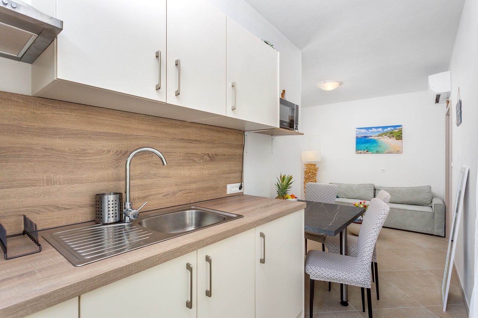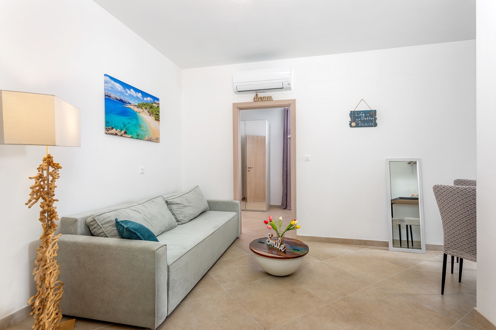 Apartment can accommodate 3 guests. Beds are situated in 1 sleeping rooms, but also in the living room, within 31m2. Guests can use a private balcony to enjoy the warm summer evenings. INCLUDED IN THE PRICE: tourist tax, final cleaning, air-conditioning, parking, internet, baby cot, hairdryer. The availability of additional services for your chosen dates of stay, as well as their prices (if none are listed) must be checked ahead of time. Any additional services not shown in the price calculation are payable directly to the property owner and only if used by the visitor.