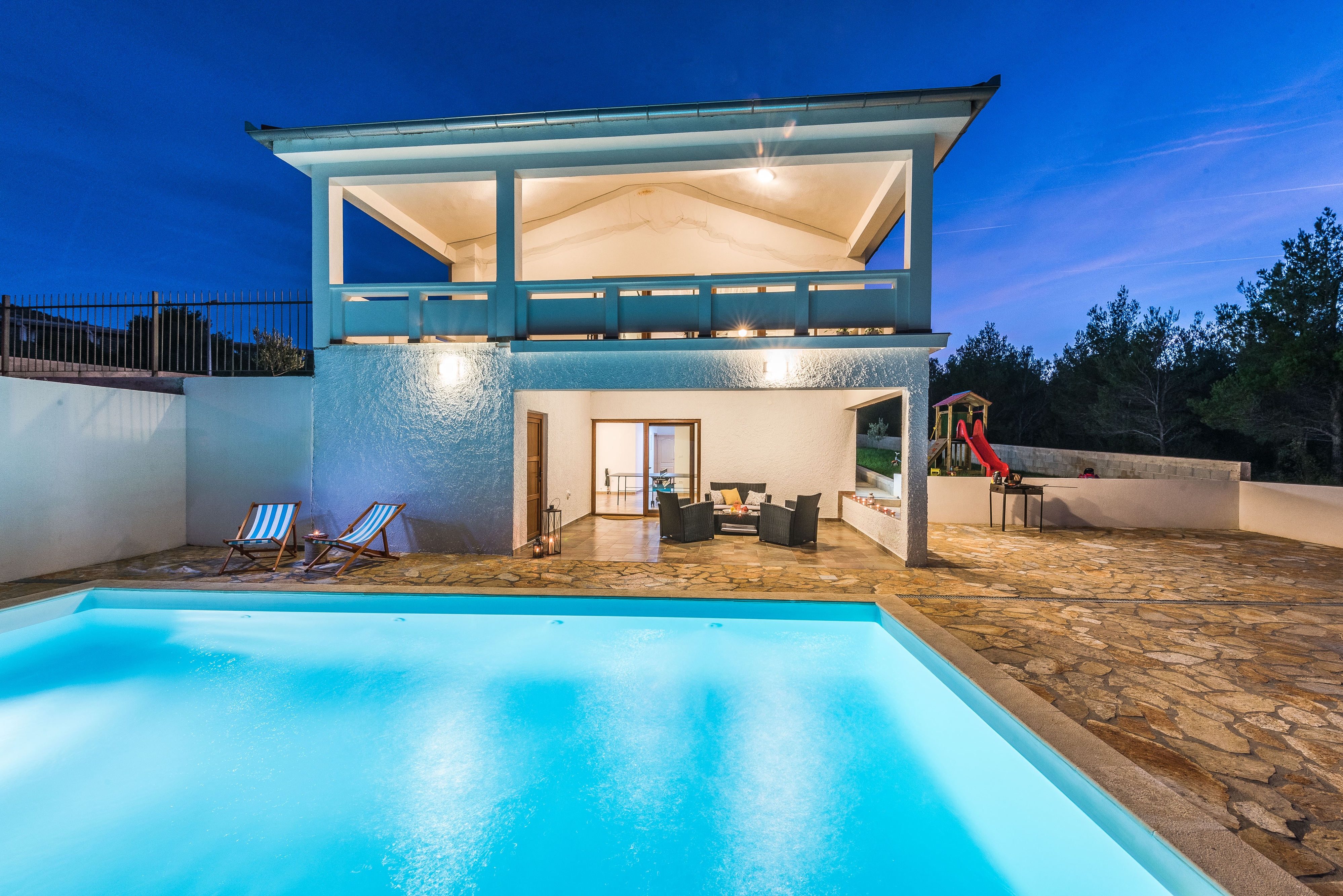 House can accommodate 10 guests. Beds are situated in 4 sleeping rooms, but also in the living room, within 96m2. Guests can use a private terrace to enjoy the warm summer evenings. For full enjoyment and relaxation there is a private barbecue for this accommodation guests only. During stay, there is a private pool for relaxation and pleasure. INCLUDED IN THE PRICE: tourist tax, final cleaning, air-conditioning, pool, parking, internet, iron, ironing board. The availability of additional services for your chosen dates of stay, as well as their prices (if none are listed) must be checked ahead of time. Any additional services not shown in the price calculation are payable directly to the property owner and only if used by the visitor.